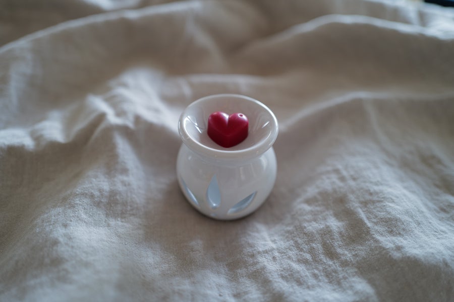 Les fondants, petits macarons, bubble ou coeurs parfumés et colorés, se consumeront à l’aide d’un brûle-parfum et d’une bougie chauffe-plat, comme sur la photo.